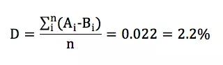 我们用 Aᵢ和Bᵢ分别表示掌握技能i的男女求职者比例,例如,A_java = 0.8并且B_java = 0.8。则n种技能的总平均偏差比例为: