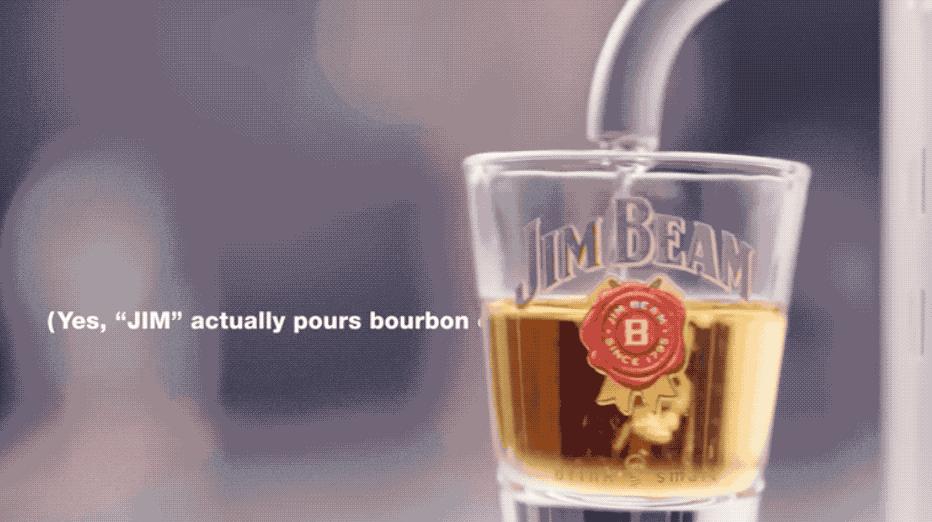 但内置的语音助手却让整个酒瓶变得智能起来。除了前面提到的自动倒酒功能之外,这个由占边威士忌品牌第七代传人 Fred Noe 配音的“Jim”,还会用带着沧桑烟嗓的声音跟你互动: