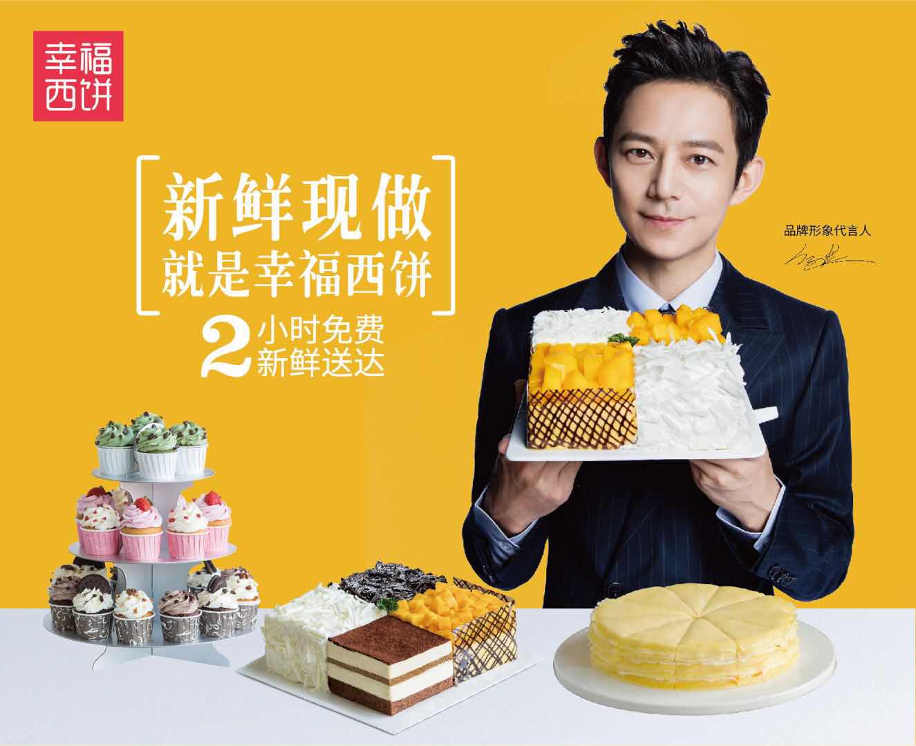首先看品牌定位,大多互联网蛋糕品牌强调高端,而幸福西饼希望做出大家触手可得的美味,一方面提高产品性价比,一方面提出“新鲜现做就是幸福西饼”的品牌理念,并且建立了幸福承诺体系——货不对版退款不退货,迟到一分钟减一元,迟到半小时免费赠送。