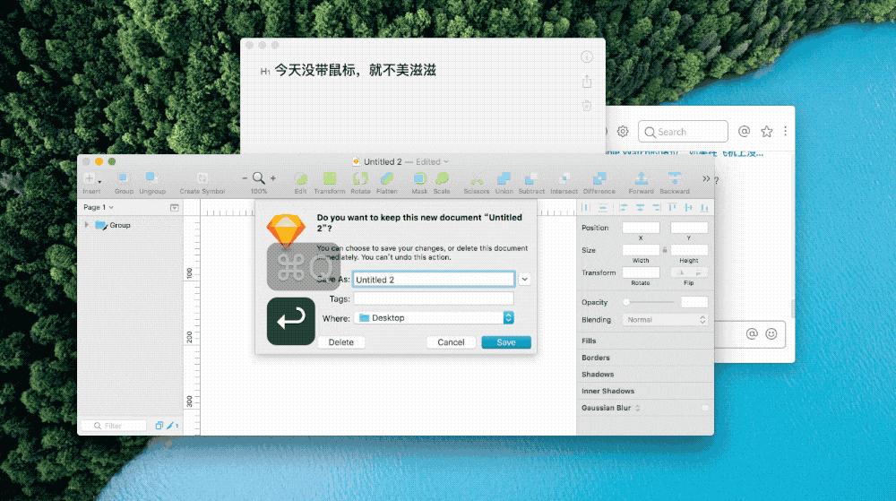 因为产品的要求,今天上午小明已经修改了十份 Sketch 稿件,屏幕里的 Sketch 文稿像群山一样遮挡在桌面上,连在桌面里清理多余的副本都无法进行了。这个时候,领导来消息,需要马上把昨天改好的文档发过去,小明手忙脚乱的按下 Command + Option + M 将所有的 Sketch 窗口隐藏起来,赶忙把桌面上的文档传了过去。