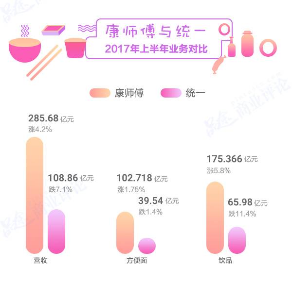 两家巨头公司的营收和净利都有不小幅度的下滑。其实康师傅和统一从成立到现在,缠斗了快20年,已经很难清楚地比较谁真正赢过了谁。现如今,双方已经悄然发生了变化,逐渐走向了不一样的方向。