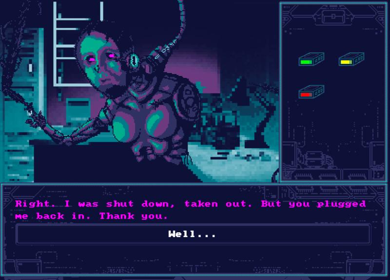 Aether的《Localhost》完全是在与在与各种人造人物的不安的对话中进行的。你的工作是擦拭每一个硬盘,这样顾客就能买到它们。要做到这一点,你必须说硬盘内的人物让你解锁他们的硬件。这种一种“灰色”的道德,尤其是当硬盘中的人物试图诉诸于你的良知时。