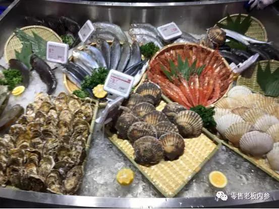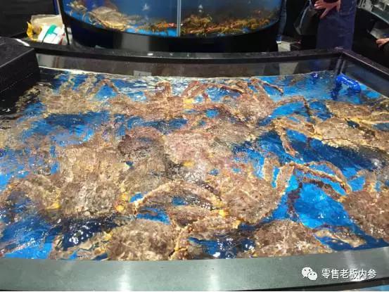 最里面的核心区域,则是一个圆形的海鲜水产区,有标志性的帝王蟹等水产品。如果说这是便利店的话,那么很难想象哪个便利店会有帝王蟹。