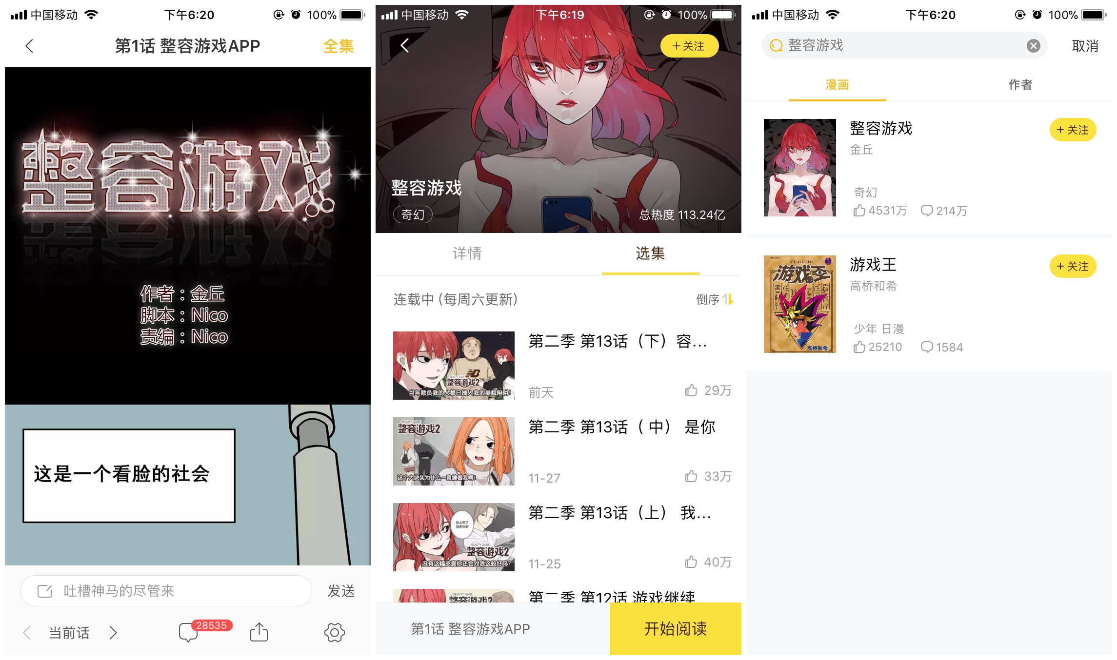 快看漫画头部作品《整容游戏》