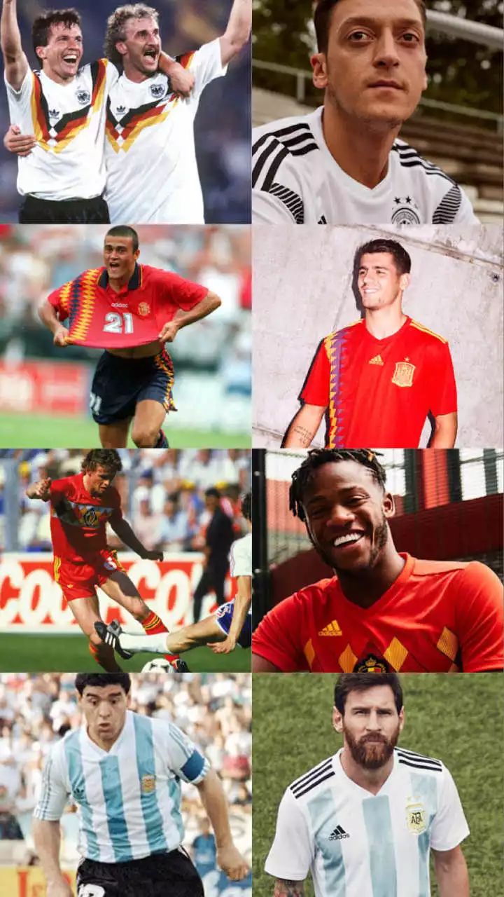 阿迪达斯旗下豪门的2018世界杯球衣,均采用了向上世纪经典款致敬的设计理念