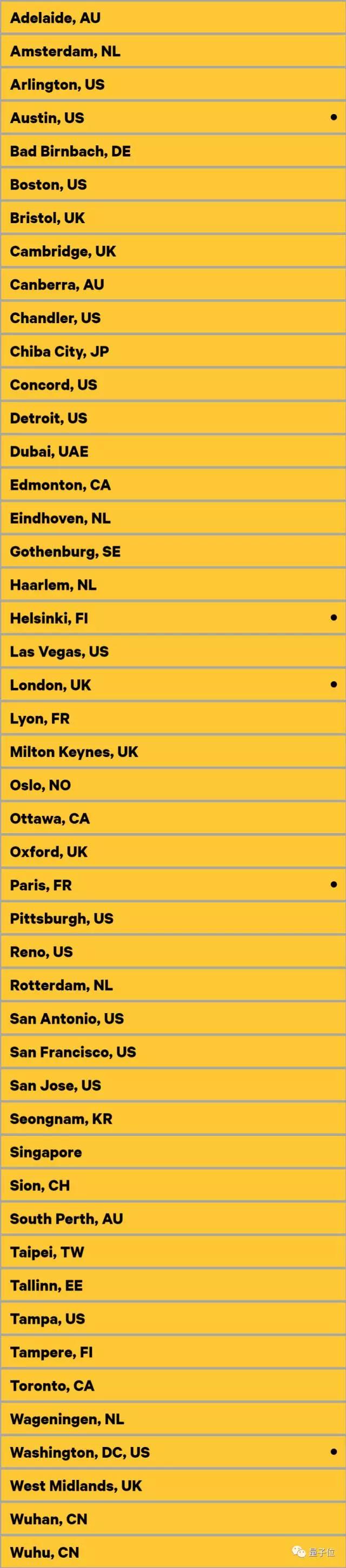 在这份名单中我们可以看到,中国已经存在3个试点地区了,包括武汉、芜湖以及台北。