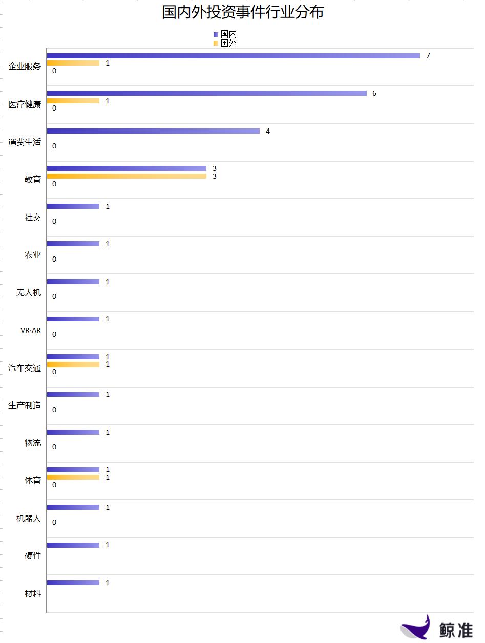 本日国内外共有38起融资事件,分布在15个行业中。国内31个项目获得融资,国外7个项目获得融资。