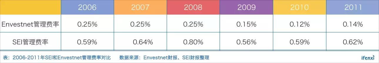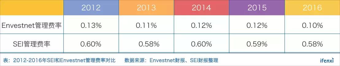 不过事实上,Envestnet的管理费并不一直都是这么低的水平,早期2006-2008年的管理费都稳定在0.25%,随后开始逐年下降,差不多10年时间缩水了一大半。