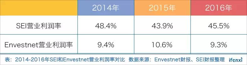 过去三年,SEI的平均营业利润率达到46%,接近一半的水平。而Envestnet只有9.8%。