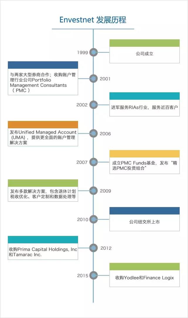 从2002年开始,Envestnet进军服务RIAs(Registered Investment Advisors)、信托机构和大型银行里的理财师,并一直通过不断地兼并收购和战略合作等方式来扩大潜在客户群。