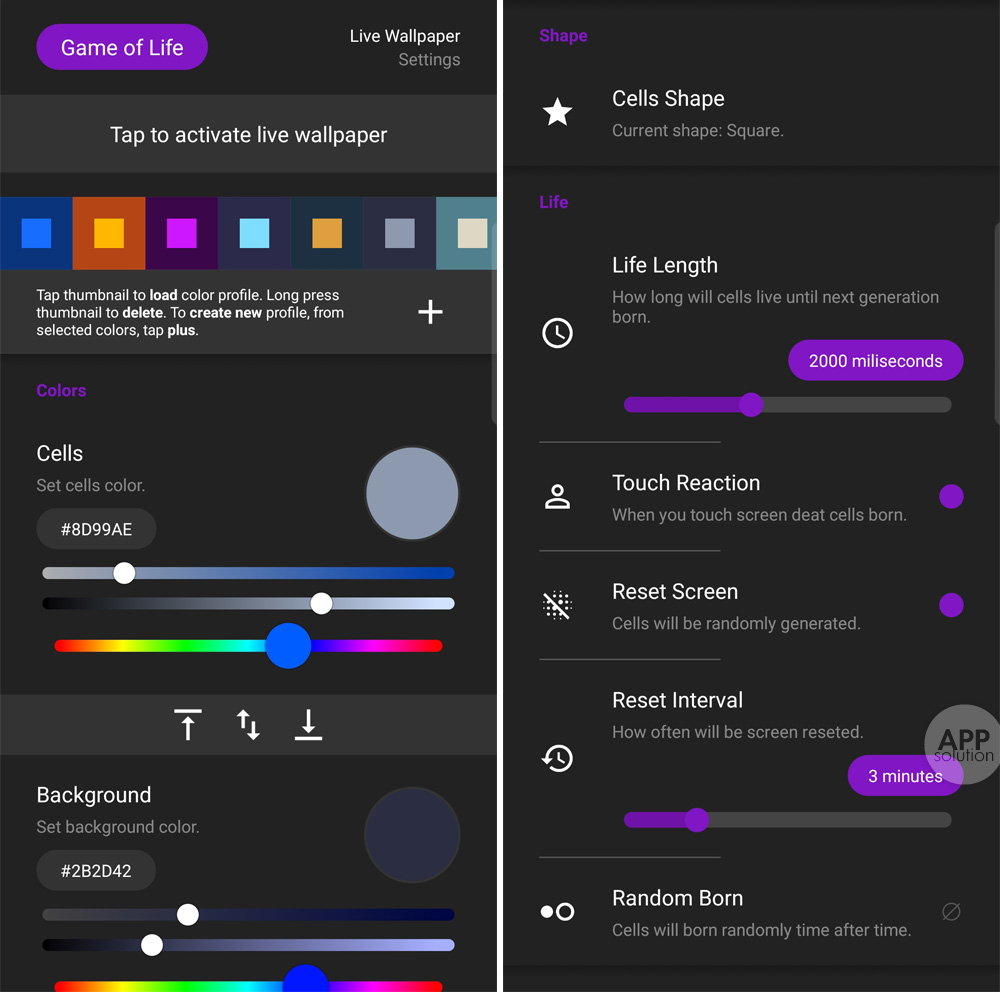 这个动态壁纸应用,不仅将生命游戏呈现在手机桌面上,还可对其高度自定义。除了 9 个现有模板供使用之外,你还可以自己创造规则。