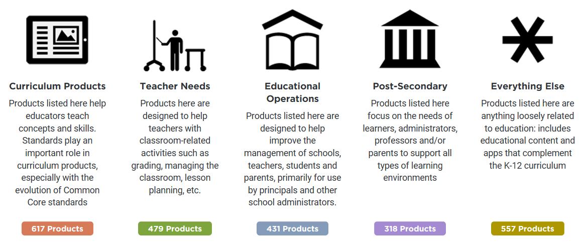 ”产品指数“是一个教育科技产品的数据库,总共被分为5大类: