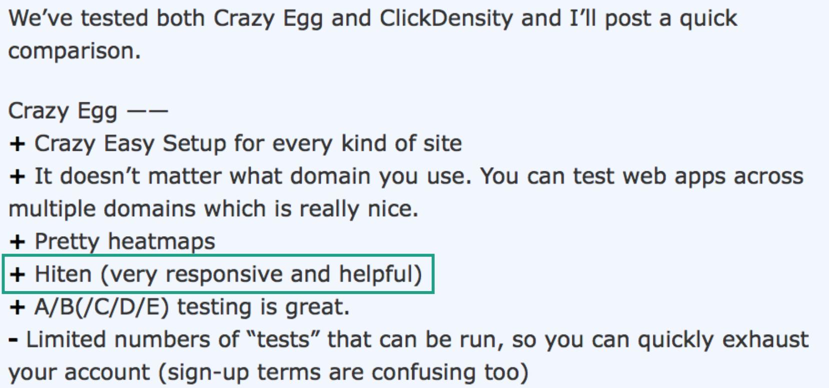 一位客户对有关Crazy Egg的一篇文章中留下了这条评论:
