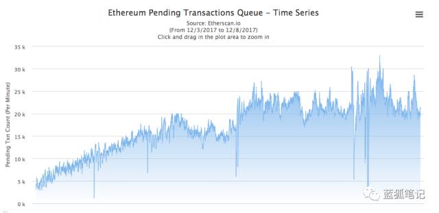 (从12月3日到12月8日,等待确认的交易越来越多)