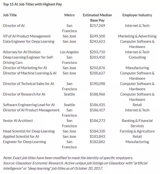 Glassdoor 上列出的 AI 职位,基本年薪平均在 11.1118 万美元。