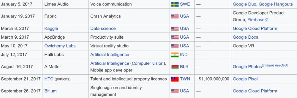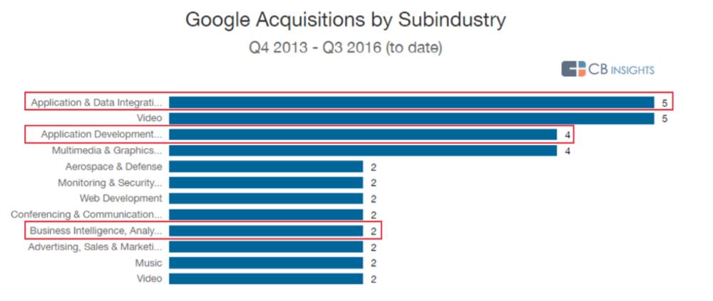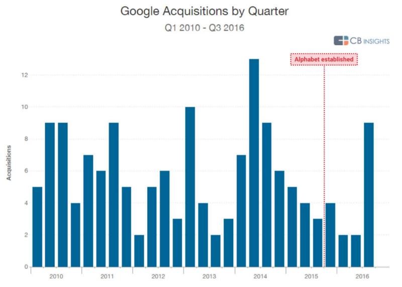 在过去的十年时间里,Google是唯一一家做出过200多笔收购的科技公司,它通过收购在硬件和数据科学领域获得了大量人才。