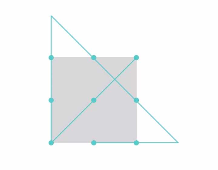 很简单,我们在大脑中,我们都认定了一点:就是我们的线条是不能超出正方形框外的,我们的大脑中虚构出了一个正方形外框连接所有的点,然后把这个作为我们的界限。