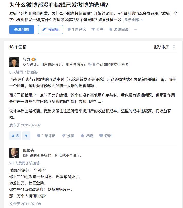 就是说不管你怎么改动,用户都可以看到最初的版本和历次改动的版本。这样我本来最担心的有些账号玩“吃了吐”的恶心事儿可以避免了。而这样的改进对政务号和娱乐号来说意义尤其重大。