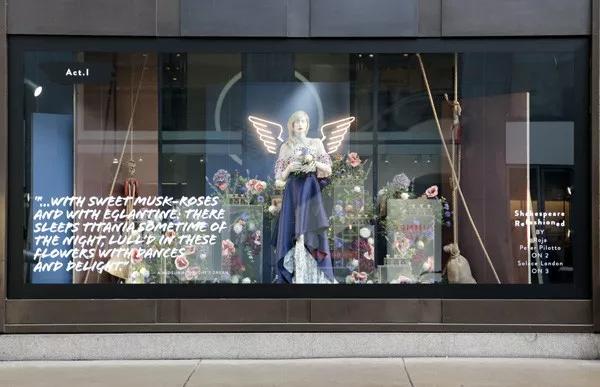时间到了2016年,Selfridge’s为庆祝莎士比亚诞辰400周年举办了“Shakespeare ReFashioned”活动,在细节处处都力求打造顾客的独特体验。活动邀请了12位设计师,从老一辈 Vivienne Westwood 到新生代的Simone Rocha ,让他们用自己的想法将其设计用莎士比亚戏剧的名言呈现在橱窗里,成为了牛津街畔一道诱人驻足的风景。