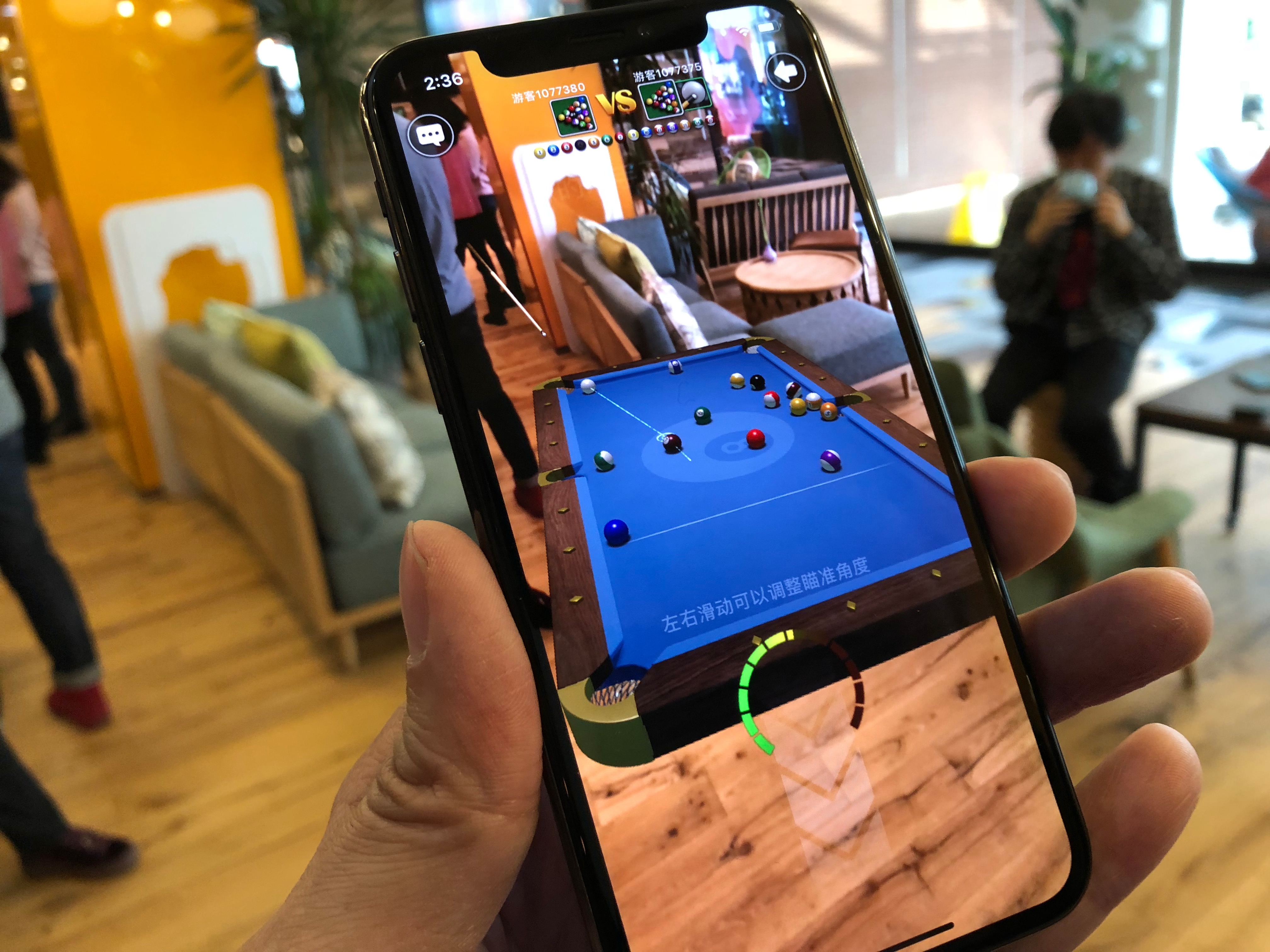 这款台球AR应用,最大的特色是可以和队友互动,一起开局