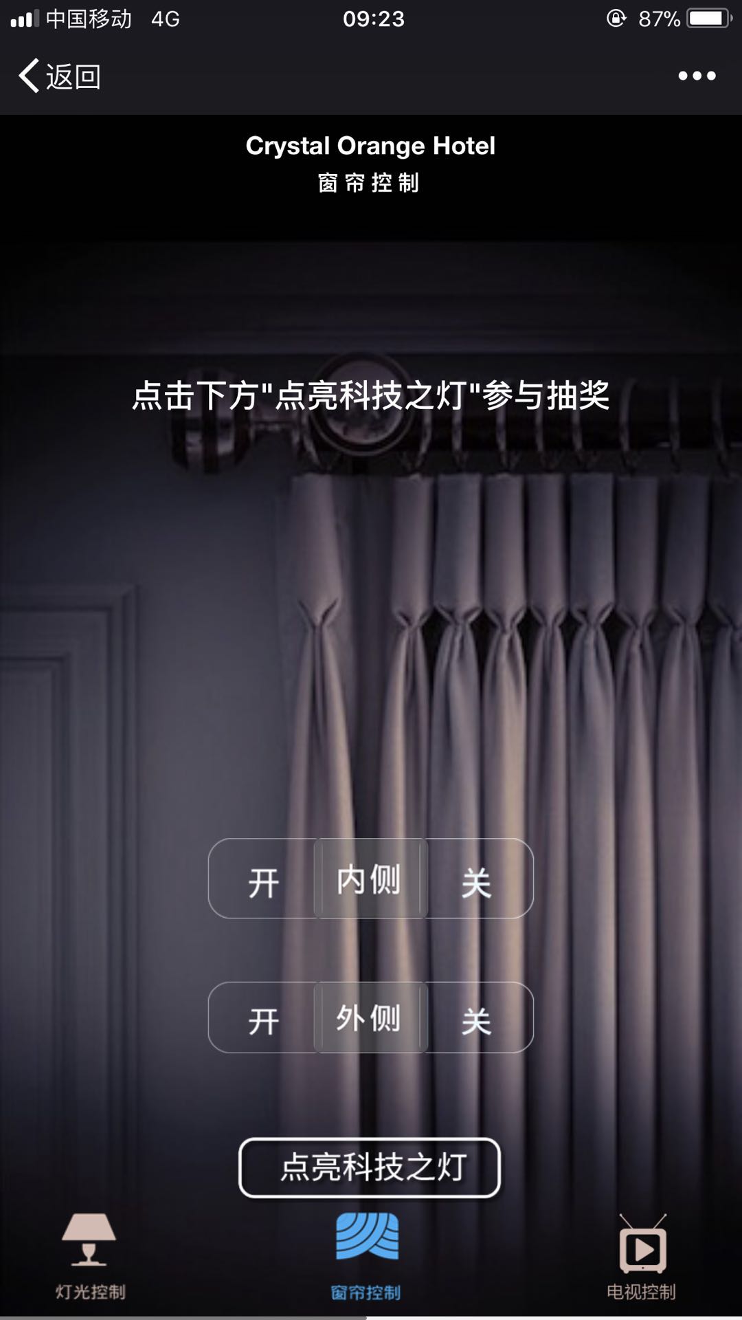 而室内的电器设置,包括灯光、窗帘的控制,也都可以在App上完成。在桔子水晶的客房内,还有一个可爱的智能音箱,通过特定的语音指令可唤醒“小助手”,并实现关灯、拉窗帘等基本的智能家居功能。比如躺在床上喊一声开灯,灯光自然就会亮起了。