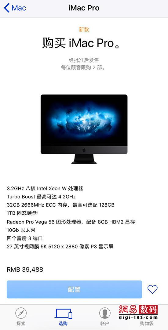 2017年12月14日消息,自今年年中的WWDC上首秀之后,经过近半年的等待,号称史上最强的苹果机--iMac Pro终于将要在国内发售了。目前,苹果海外官网已经上市开卖,售价4999美元起,而国内官网也已上架,并公布了其行货价格为39488元起,具体发售时间要等相关审批手续走完才能最终确定。