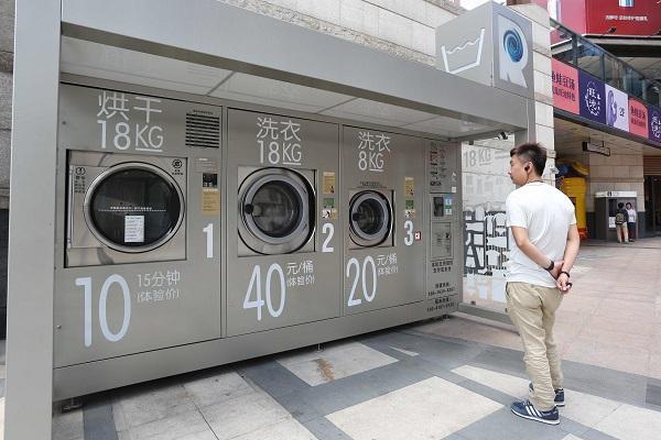 今年5月,上海徐汇区街头首次出现共享洗衣机,该设备由三个滚筒箱体构成,分别为8kg、18kg两种容量的洗衣机和18kg的烘干机。该机自带洗涤剂,洗衣时间30分钟,烘干15分钟。收费标准为8kg每桶收费20元,18kg每桶收费40元,烘干收费10元。支持现金以及支付宝、微信三种付款方式。