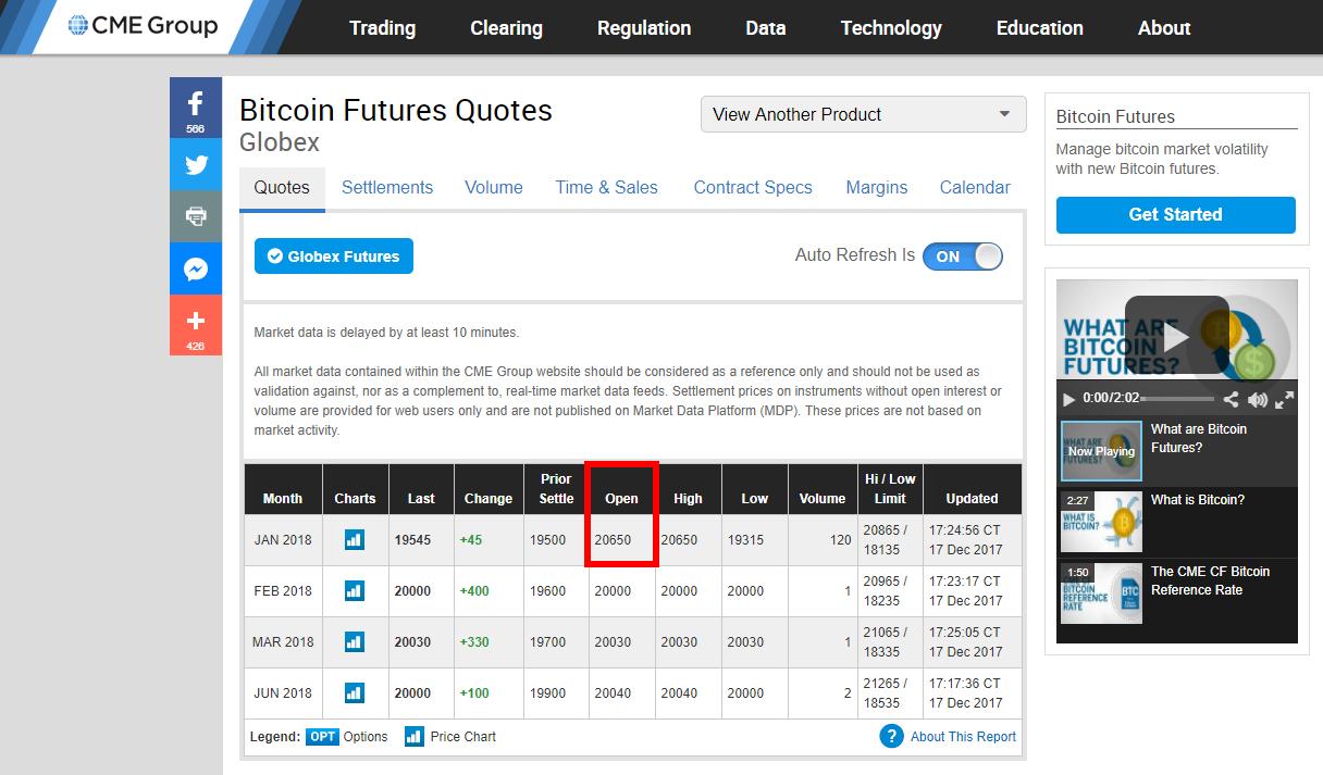 CME比特币期货上市首日,高开至20650美元