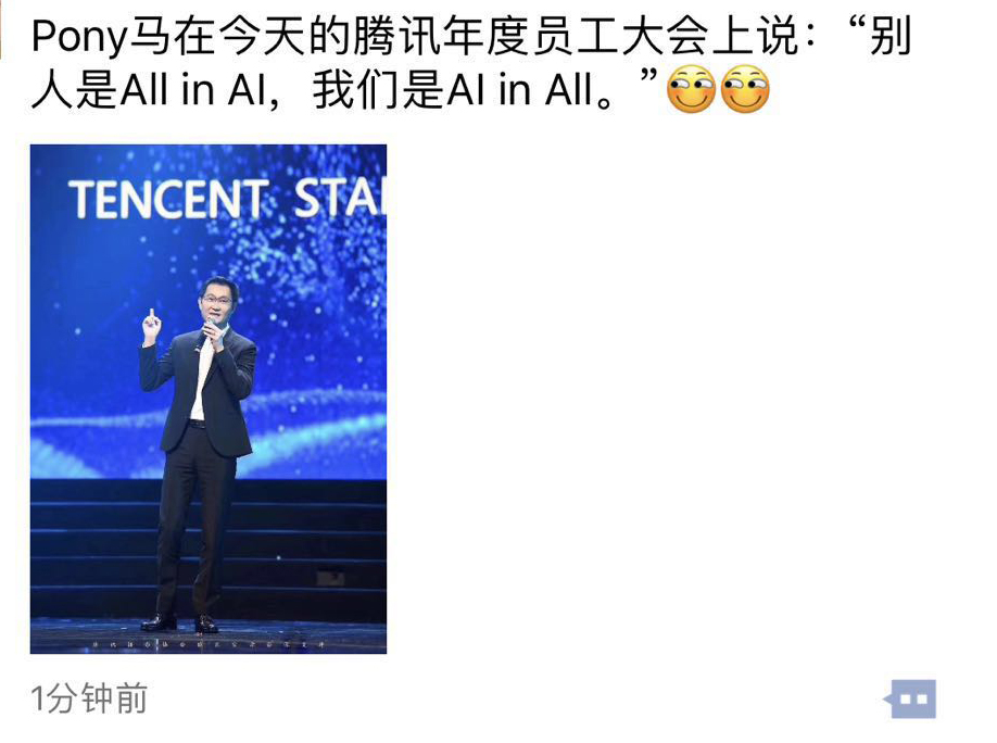 我们看看大佬是怎样看待人工智能的,比如腾讯的马化腾: