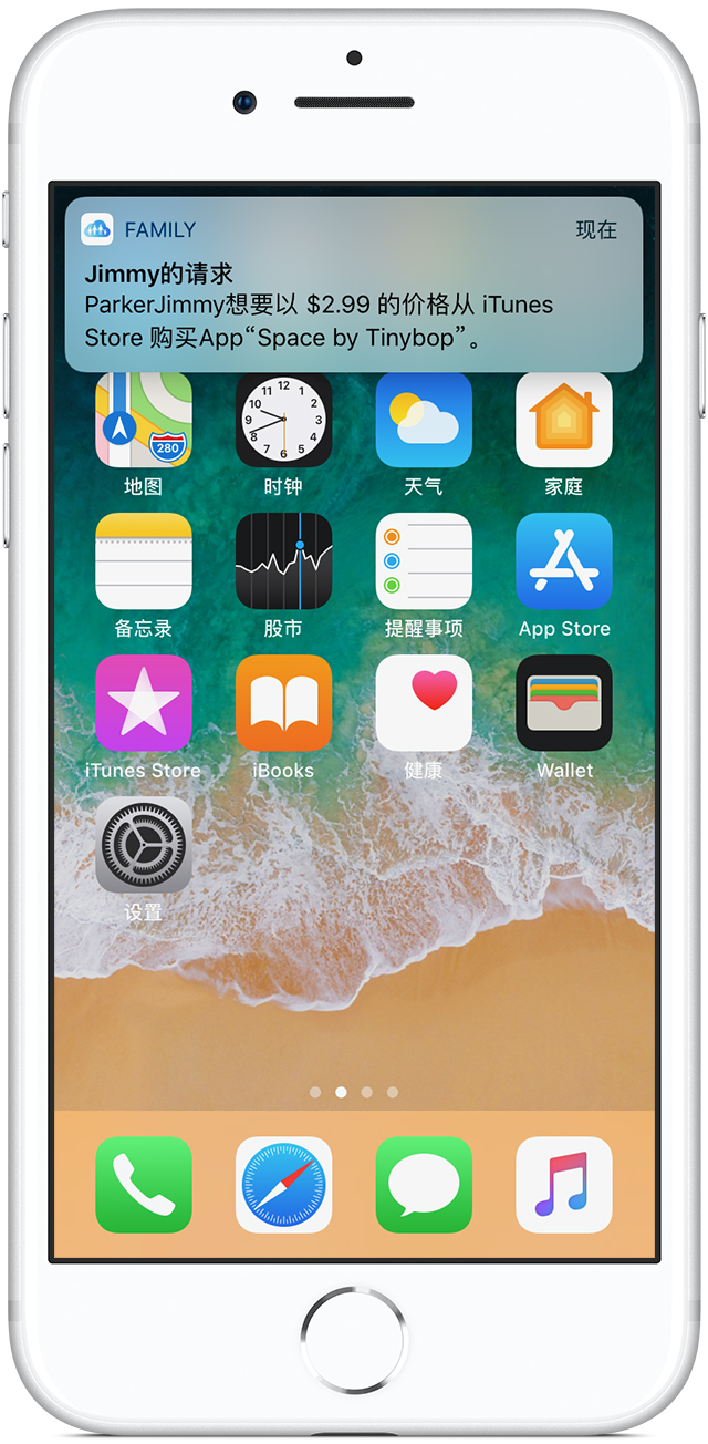 Apple 家人共享可让最多六位家庭成员轻松共享 iTunes、iBooks 和 App Store 购买内容、Apple Music 家庭会员资格和 iCloud 储存空间方案。您的家人还可以共享相簿、日历和提醒事项,甚至帮助定位彼此丢失的设备。