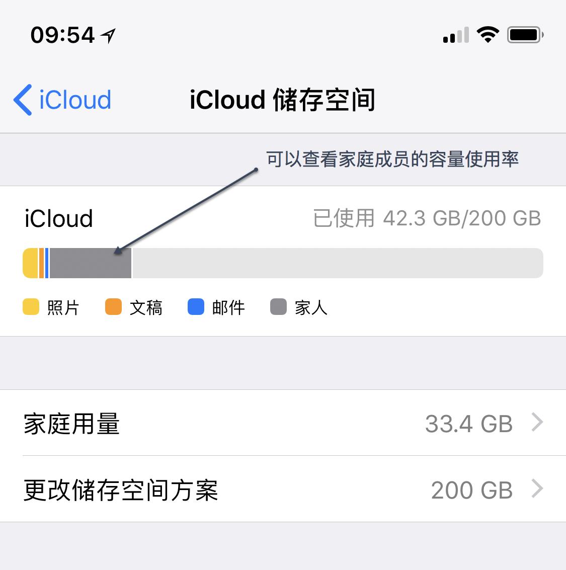 启用之后,所有家庭成员共享这总计 200GB 或 2TB iCloud 存储空间。通过「设置 - Apple ID - iCloud - 管理存储空间 - 家庭用量」,可以查看各个成员已占用的容量。但具体每位成员各自储存的内容,其他成员无法查看。