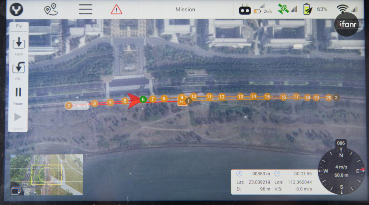任务的执行一样很简单。待无人机准备完毕后,从存档中调用飞行任务,上传到飞机飞控,启动任务,飞机就会按照设定的参数自主飞行。飞行任务从遥控器同步到飞机的时间视任务复杂程度而定,爱范儿测评的一段时间大多数任务都可以在十秒内同步完毕。