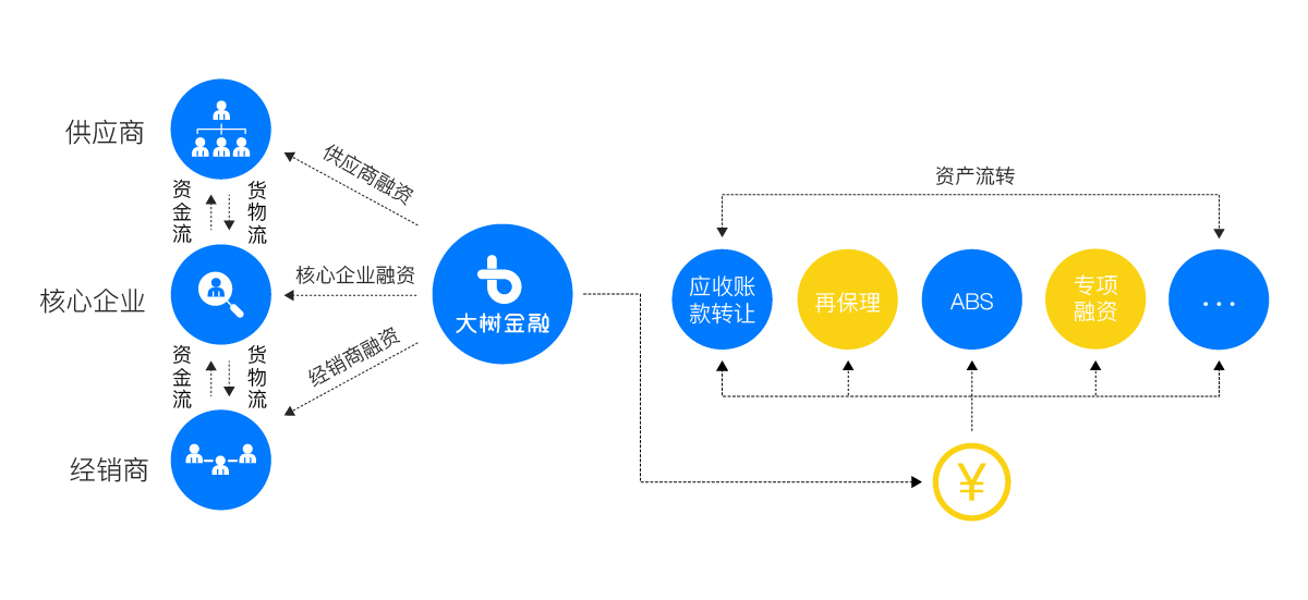 据蔷薇控股方面介绍,大树金融一端是可穿透核实的资产生成平台。另一端对接资金方的资产流转平台(主要包括银行、交易所、商业保理公司、财富管理机构等)。