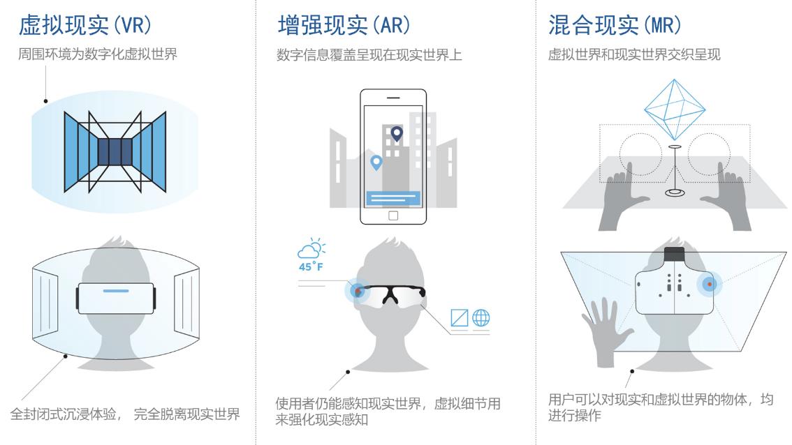 在技术层面,我们先来比较混合现实(mixed reality - MR)、虚拟现实(virtual reality - VR)和增强现实(augmented reality -AR)