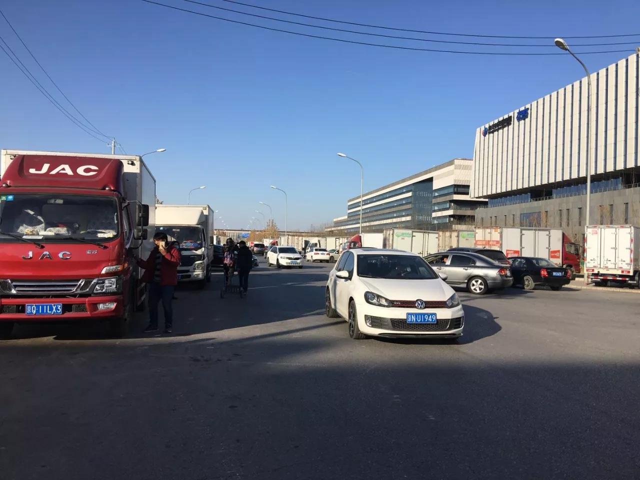 后厂村的各个路口正被陆续架起限高杆,禁止货车进村。不少货车横七竖八地停在中关村软件园与货运村相邻的马路上。