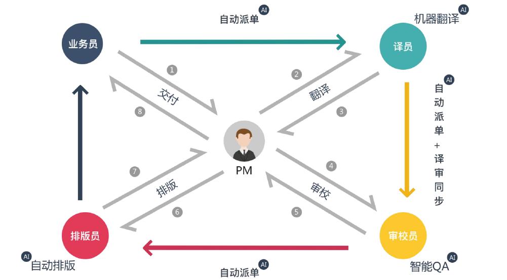 创始人兼 CEO 张马成告诉36氪,以协同功能为例,过去当翻译公司接到用户需求后,会先交由项目经理审稿,项目经理依靠主观经验判断这篇稿件所属的专业领域与难易程度,根据这些信息项目经理需要去匹配符合的翻译员,这个过程还需要与翻译员沟通确定是否接单;沟通完翻译员之后,项目经理要再对接审校人员、排版人员等多达5~8个不同环节的工作人员。所有环节都是双向沟通,这也进一步限制了单个项目经理服务客户的上限。