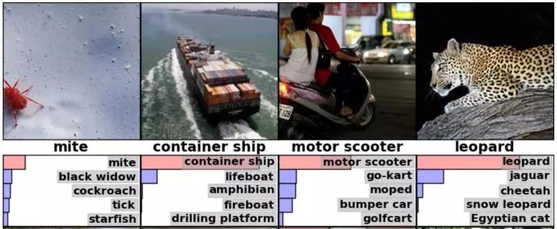 针对 ImageNet 数据集中的图片进行预测的 CNN 架构预测结果范例。
