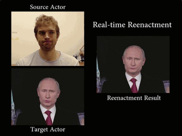 去年年初的时候,德国纽伦堡大学的相关团队发布了一个应用,也就是非常出名的Face2Face。这款应用的能力,是通过摄像头进行脸部追踪,从而让视频里的人跟着你说话。