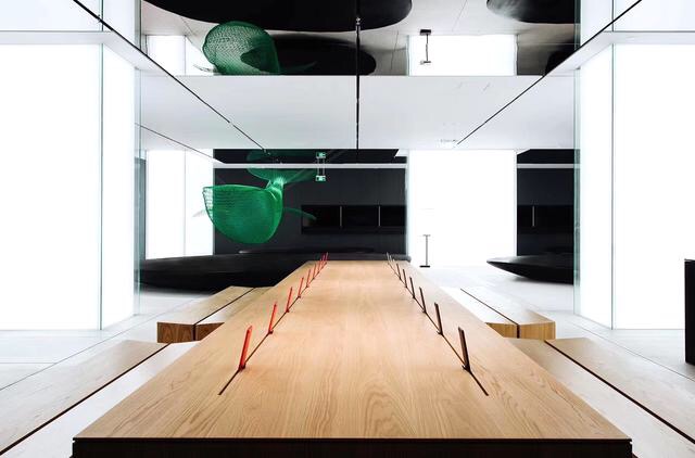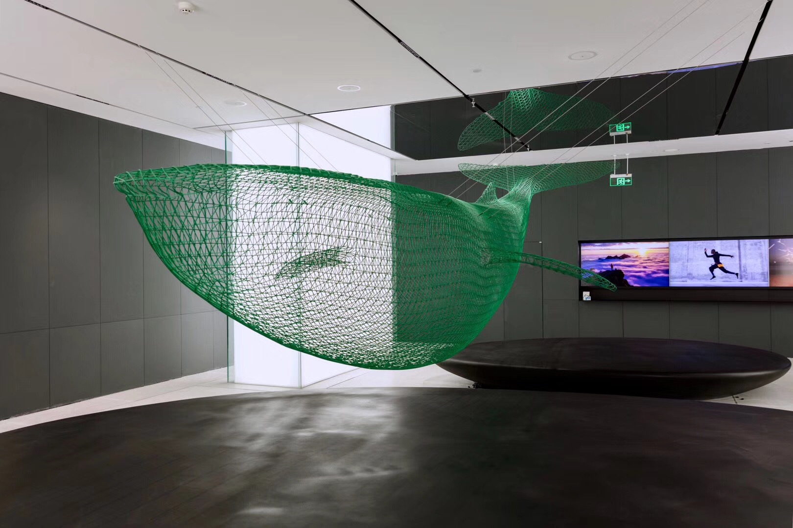 在店内闲逛的过程中,有一个8m的鲸鱼设计吸引到我们,至于为何采用鲸鱼的设计,设计师张星表示:希望能把年轻人脑海里一些科幻的想象空间激发出来。