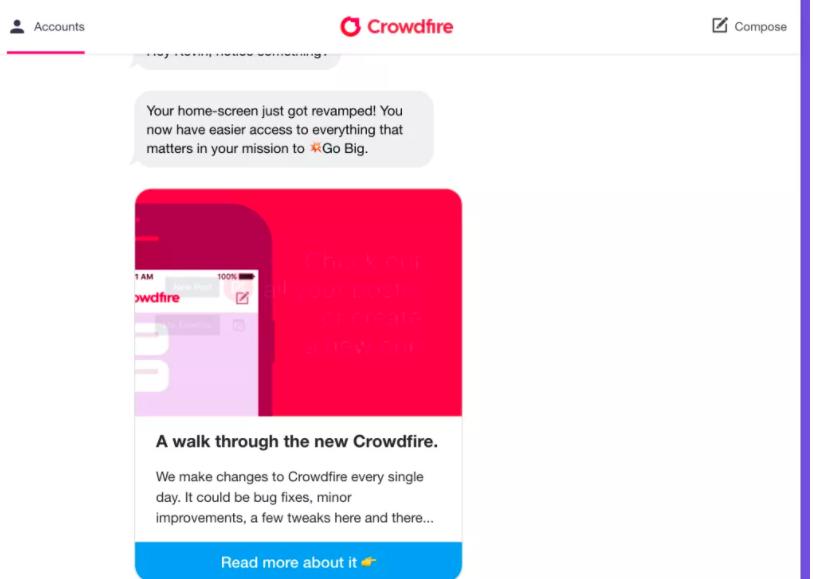Trello很好地解决了这个问题:用户只需要两次点击就能进入产品。另外一个例子是Brighgcrowd,它让你用你的Gmail账号就能完成产品注册。还有Crowdfire,它通过一个聊天窗口就能让用户完成产品的注册与使用。