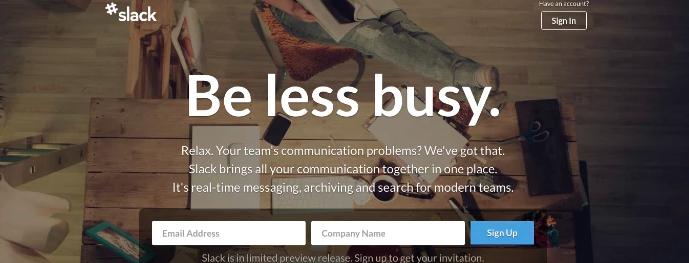 如果我们看看Slack的网站主页在2013年时是什么样子,我们就会非常清楚地知道Slack希望访客采取什么样的行动(注册)。但与此同时,他们的文案看起来也很轻松随意,让人非常放心:“放松。你的团队存在的沟通问题?我们已经明白了。”