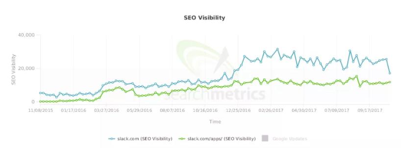 与直觉相反的是,SEO已经成为许多B2B公司的重要客户获取渠道。原因之一是B2B公司开始越来越多地模仿B2C公司。另一个原因是互联网和搜索的日益普及,人们开始在Google上做大量的研究,甚至开始在Google上研究企业级产品。 例如,SEO在Atlassian和Slack的用户获取中发挥了至关重要的作用。Slack的大部分自然流量来自那些与自己集成的产品。