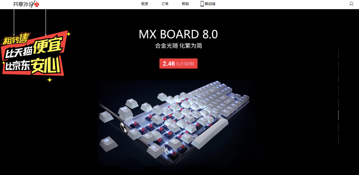 无论你是喜欢青轴的脆、黑轴的韧,还是喜欢绚丽的灯或者低调的经典款,都可以通过这个共享外设平台来租用。目前,这项服务已经正式上线。
