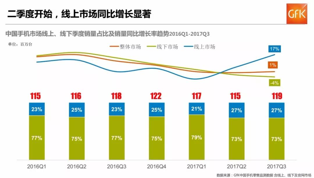从2015年开始,线下渠道一度成为中国手机行业的增长引擎,但自2016年下半年以来,线下渠道的销量就开始全面下滑,从2017年二季度开始更已开始负增长。