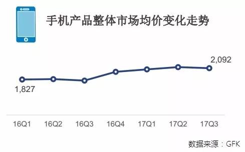 手机公司的成本与售价也随之一路攀升。过去6个季度以来,中国市场的手机平均价格已经从1827元增长到2093元,增长了14.5%。
