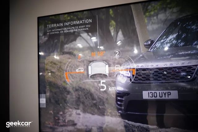 HUD 影像直接投射到挡风玻璃上,作为揽胜车系的成员,路虎在星脉的 HUD 上增添了车身实时状态显示,可以方便司机越野时快速获取车身信息。