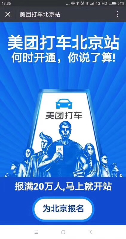 据悉,美团打车北京站开始招募司机。美团打车的招募司机、乘客活动页面显示,“报满20万人,马上就开始”。据介绍,北京市前5万完成注册并成功通过审核的司机,可在开城3个月期间享受免抽成特权,但不免除每单0.5元平台信息费,乘客注册即可获得新人见面礼。已有超过1万人报名。接近美团打车的人士曾透露,为了吸引更多全职司机,美团打车的司机扣点仅为8%,而滴滴快车的平台抽成在20%左右。不过近日发现,美团打车对司机的抽成已从今年6月起提至15%。相比于滴滴的抽成比例,美团优势正在逐步缩小。