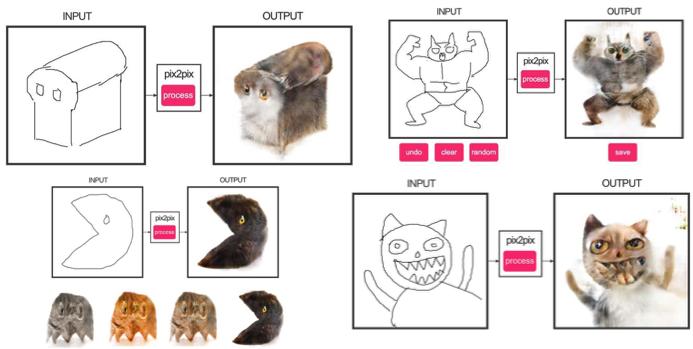 要想应用Pix2Pix,你需要一个包含来自不同领域图片匹配对的数据集。比方说在卡片的情况下,收集此类数据集并不是问题。然而,如果你希望做点更复杂的东西,比如对对象进行“变形”或者风格化,一般而言就找不到对象匹配対了。