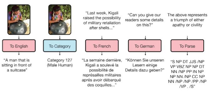 研究人员已经训练了一个模型来执行8种不同领域(文本、语音、图像)的任务。比方说,翻译不同的语言,文本解析,以及图像与声音识别。
