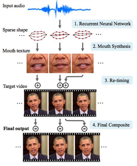 华盛顿大学干了一件严肃的工作,他们生成了奥巴马总统的唇语动作。之所以要选择他是因为他讲话的网上视频很多(17小时的高清视频)。